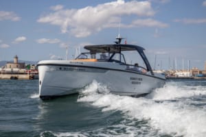 Diese atemberaubende neue Saxdor 320 GTO ist jetzt auf Mallorca erhältlich. Wir haben sie diesen Monat auf der Internationalen Bootsmesse in Palma auf eine Spritztour mitgenommen und einige Bilder mit der wunderschönen Kathedrale von Palma im Hintergrund gemacht. In dieser Umgebung fühlt sich die 320 GTO wirklich zu Hause und kann auf dem Wasser bis an ihre Grenzen getrieben werden - was für eine aufregende Fahrt!