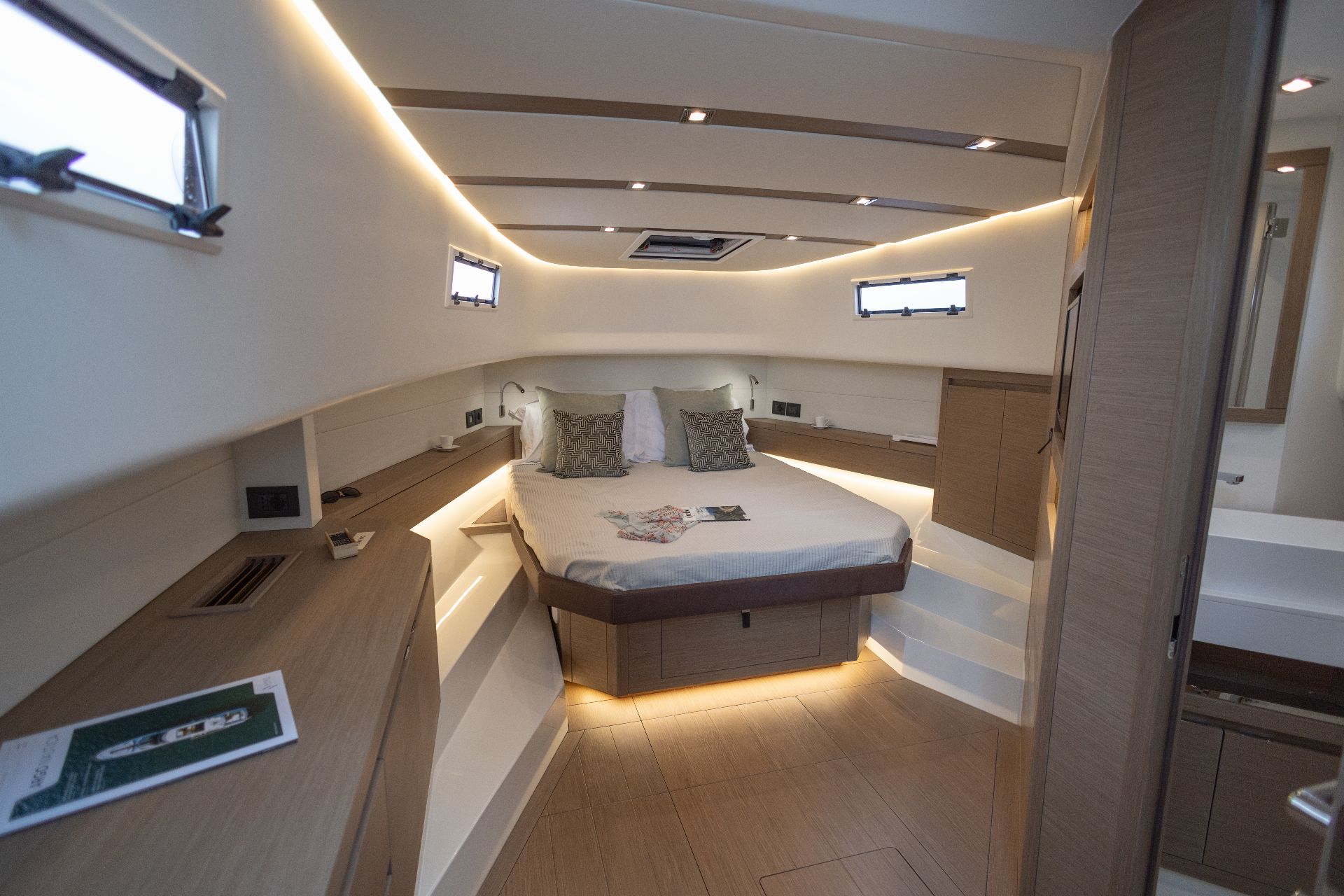 Die 43 ist kompakter als die Endurance-Baureihe und eine Luxusyacht, die den Raum geschickt nutzt, ohne ihn zu verschwenden. Unter Deck befinden sich warme und einladende Kabinen mit Stauraum und reichlich Stehhöhe sowie natürlichem Licht für den Tag und wunderschöner LED-Beleuchtung für die dunkleren Stunden.