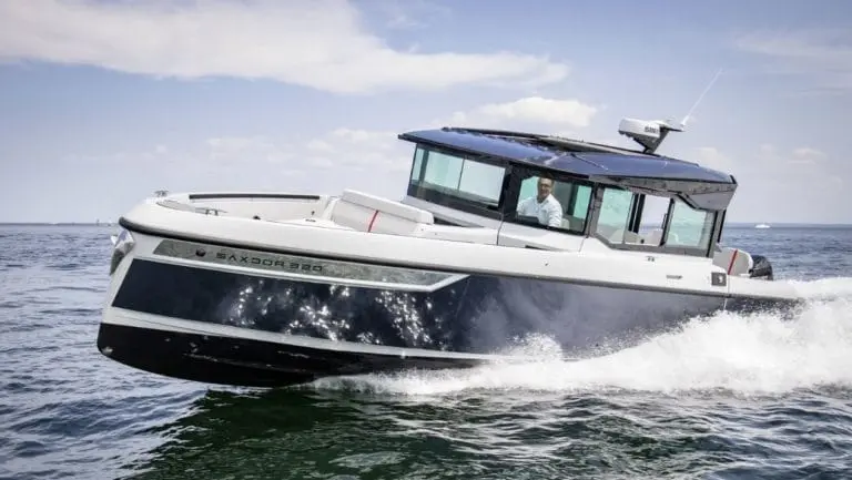 Mit konfigurierbaren Decksbereichen, entspannten Sitzgelegenheiten und einer Doppelkabine unter Deck wurde die Saxdor Yachts 320 GTC für diejenigen konzipiert, die sowohl ein Wochenendboot als auch eine aufregende Fahrt auf dem Wasser suchen. Ein Merkmal der 320 GTC, das sich von ihren Schwesterbooten unterscheidet, ist das geschlossene Lotsenhaus, das zusätzlichen Schutz vor den Elementen und Schutz für Ihre Gäste an Bord bietet. Mit einer maximalen Motorleistung von 600 PS kann die Saxdor Yachts 320 GTC eine Geschwindigkeit von bis zu 50 Knoten erreichen.
